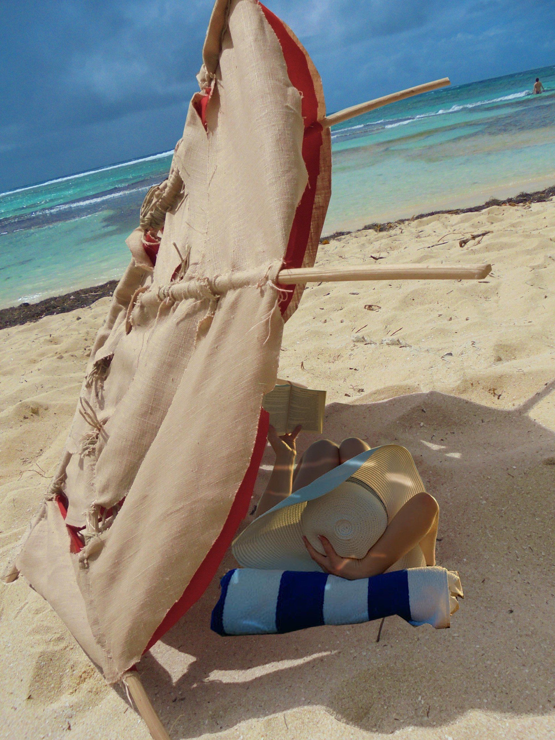 Parasol qui peut s'adapter en trois positions grâces à la flexibilité de ses armatures.